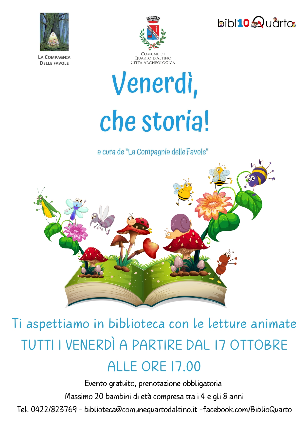 Evento gratuito con prenotazione obbligatoria (massimo 20 bambini) contattando la biblioteca comunale: 0422 823769 biblioteca@comunequartodaltino.it